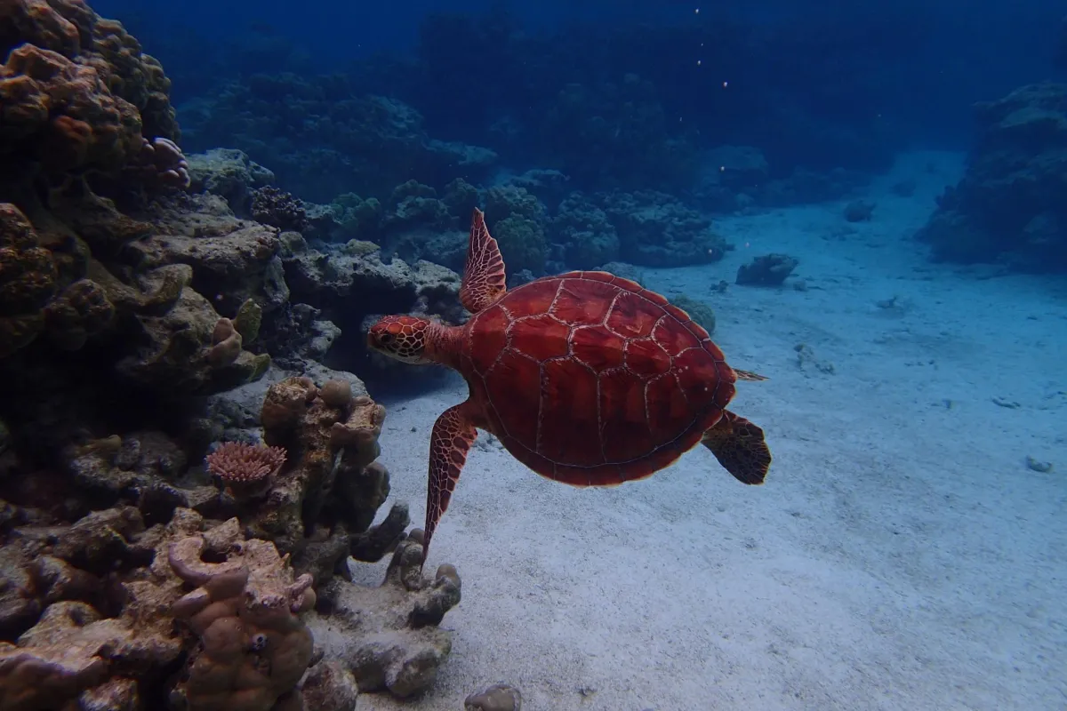 The Green Sea Turtle, Chelonia midas, or Honu in Tahitian, is one of the most fascinating animals in the ocean, and Tetiaroa plays a key conservation role for the local population.