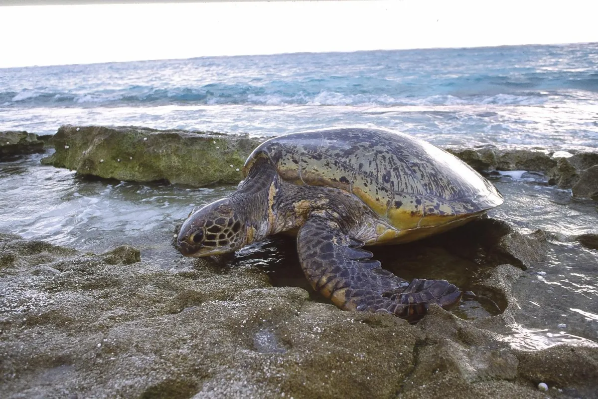 The green turtle lays its eggs regularly in French Polynesia